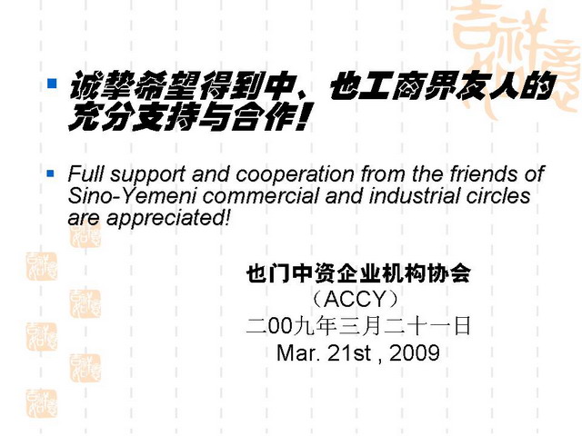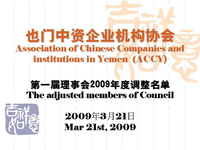也门中资企业机构协会第一届理事会2009年度调整名单